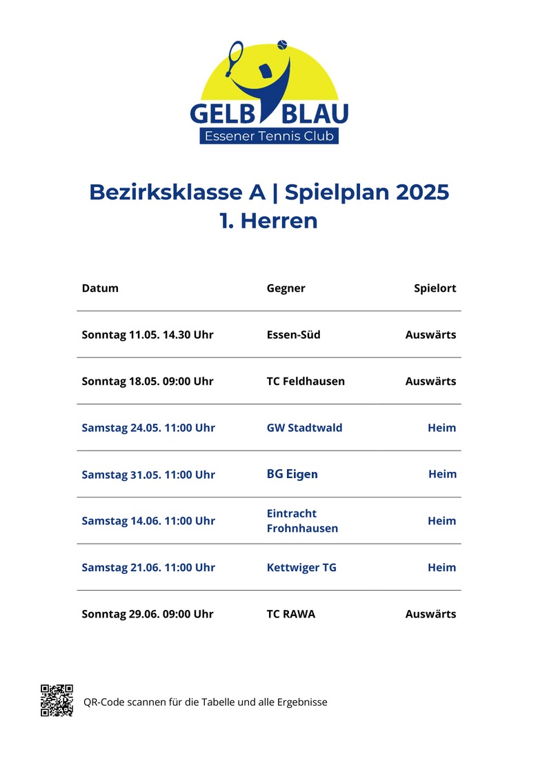 Ob Heimspiel oder auswärts – wir setzen auf Teamgeist, spannende Matches und faire Begegnungen. Zuschauer sind herzlich willkommen, unser Team vor Ort zu unterstützen. Die aktuellen Spieltermine und Ergebnisse findet ihr wie gewohnt auf unserer Website.
